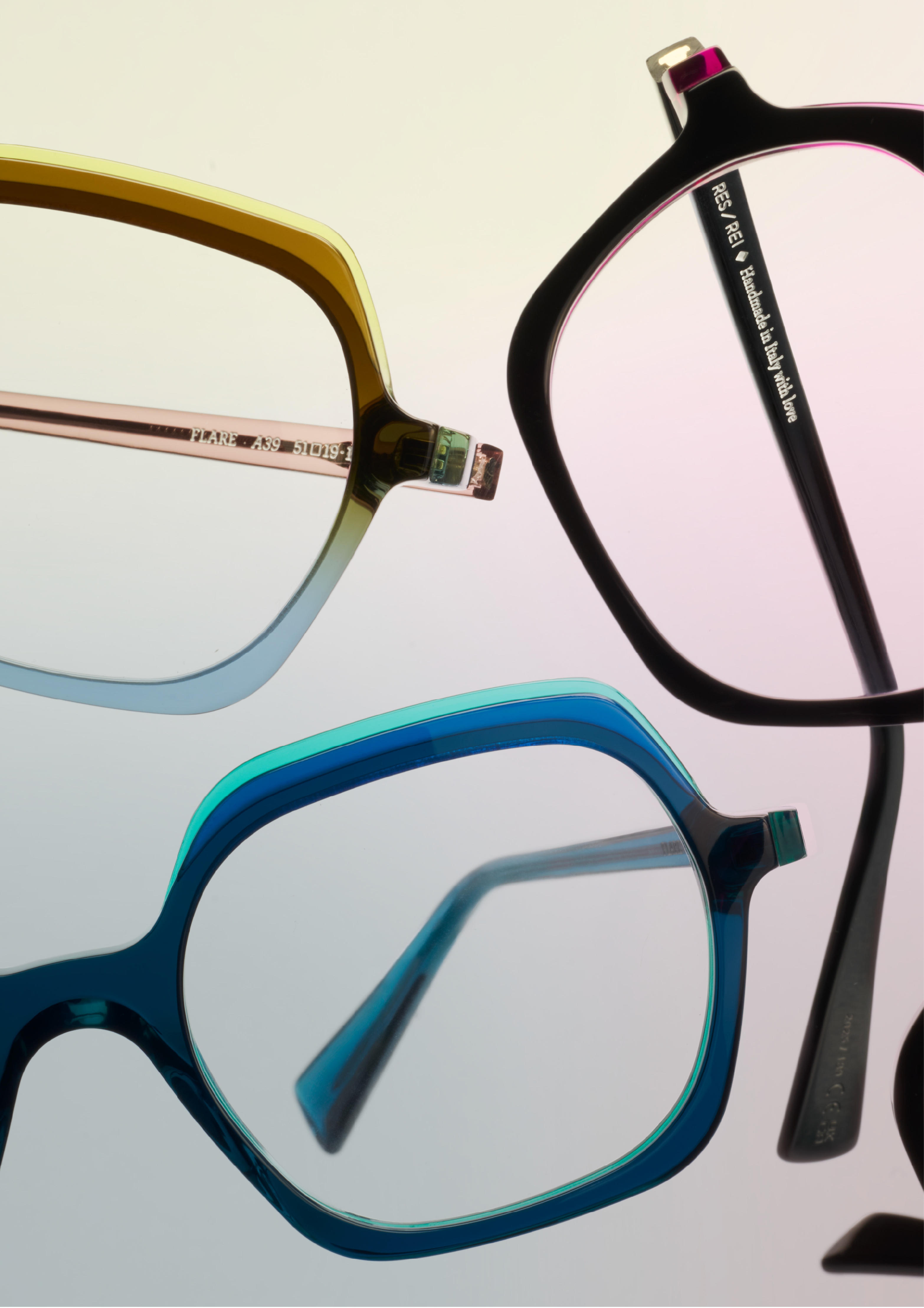 Le collezioni RES / REI sono suddivise in famiglie di prodotto, ciascuna modellata da un’ispirazione specifica che spazia dal design all’arte e alla moda. Questi temi prendono forma in silhouette raffinate e combinazioni di colore originali. Realizzata a mano in Italia con materiali di alta qualità, ogni montatura riflette il nostro spirito indipendente, unendo artigianalità, creatività e attenzione ai dettagli in pezzi pensati per durare nel tempo.